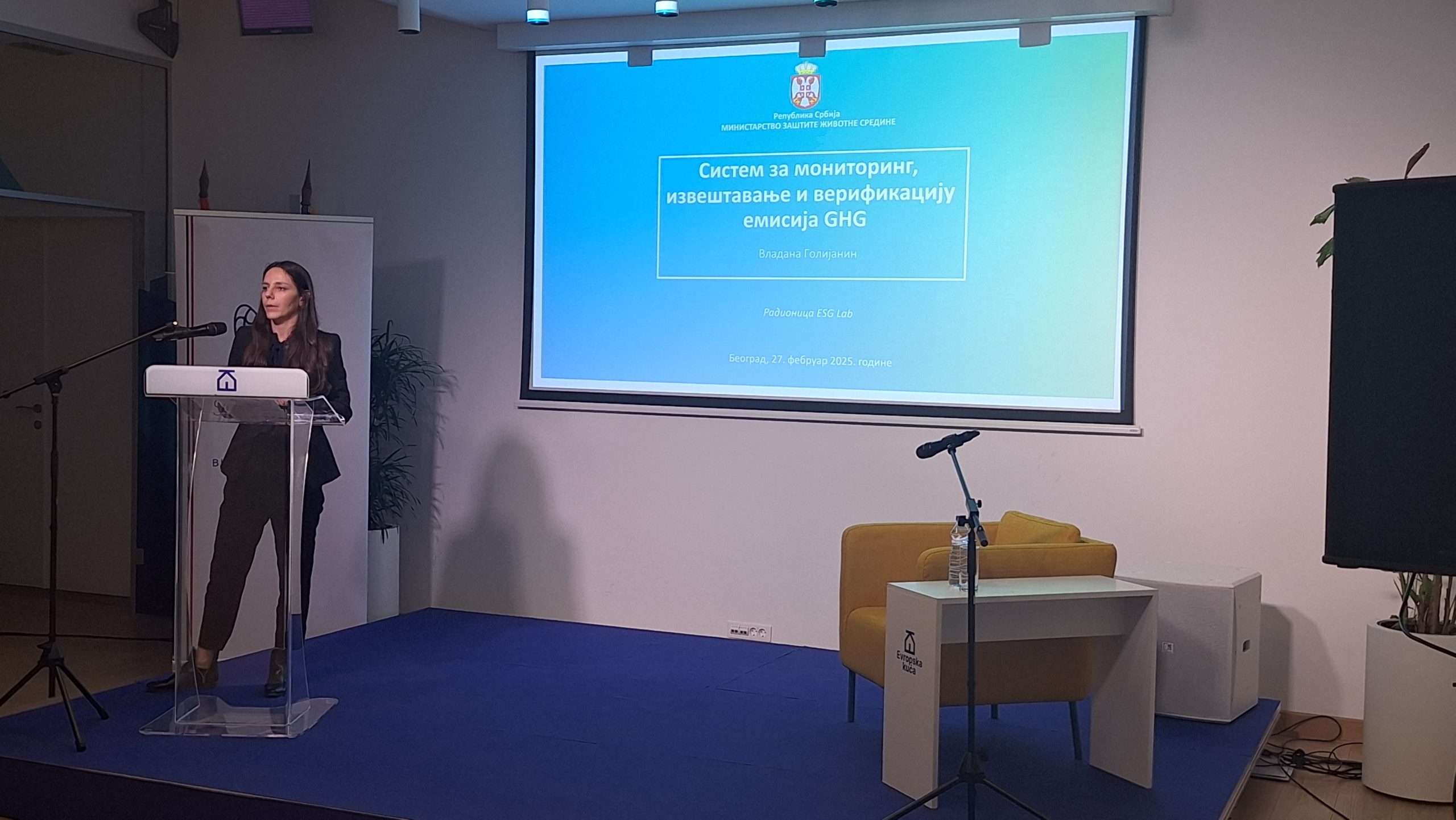 Specijalna gošća ove sesije Lab-a bila je gđa Vladana Golijanin, iz odeljenja za klimatske promene  Ministarstva zaštite životne sredine Republike Srbije, koja je predstavila  značaj sistema za praćenje, izveštavanje i verifikaciju emisija GHG, kao i njegovu ulogu u dekarbonizaciji privrede. Gđa Golijanin je tom prilikom i predstavila novu uslugu u vidu „eGHG“ platfome i objasnila kako kompanije mogu pristupiti ovoj platformi.