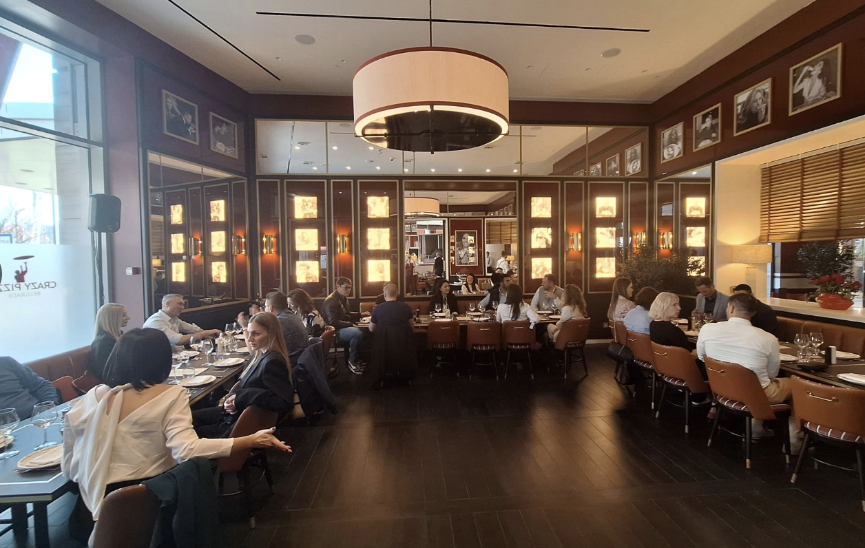 I kako drugačije, nego uz pizzu i ostale autentične italijanske specijalitete, u prelepom ambijentu restorana Crazy pizza, našeg takođe novog člana, uz italijansku muziku i neobičan „spinning pizza“ performans koji je upotpunio ovo lepo druženje.