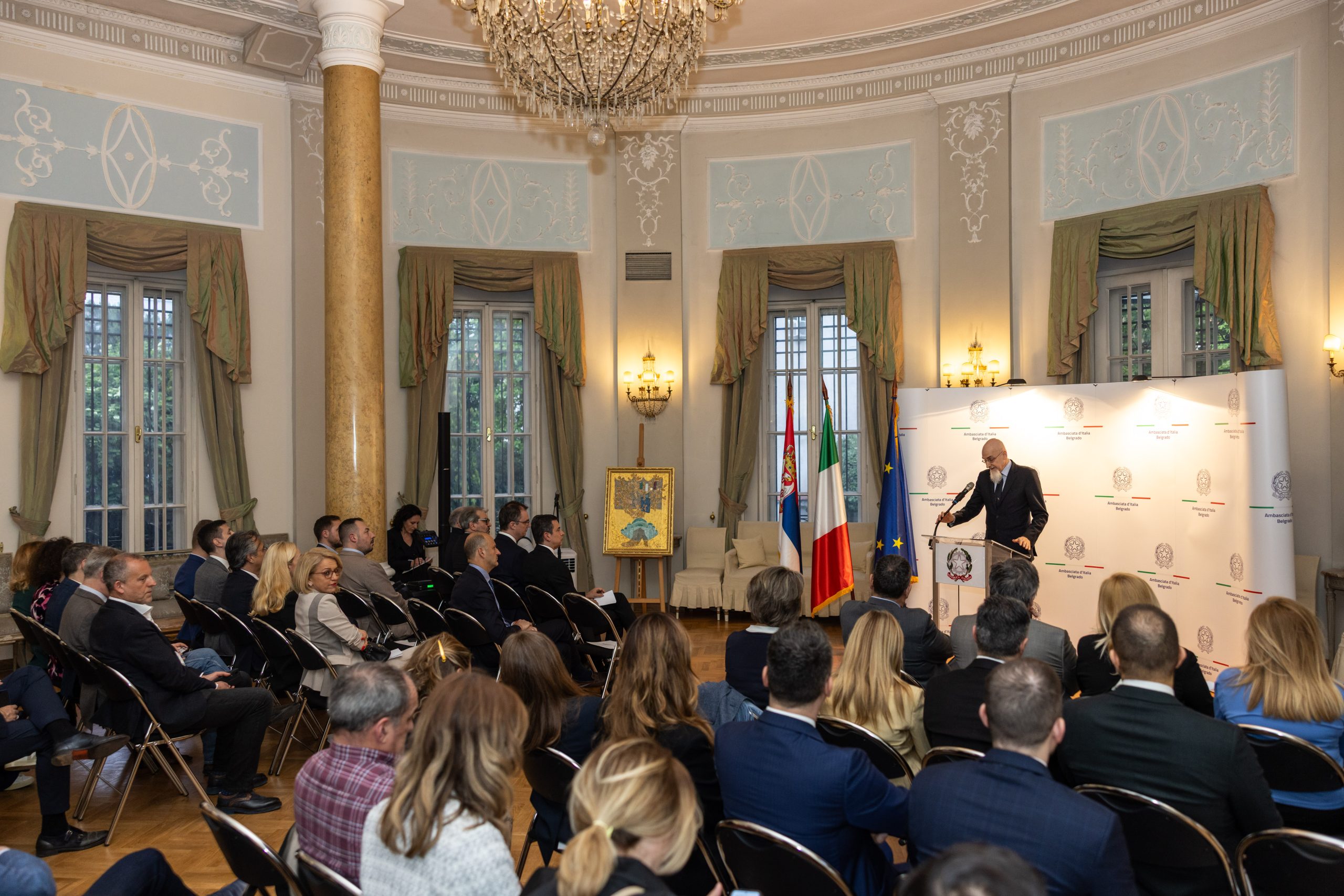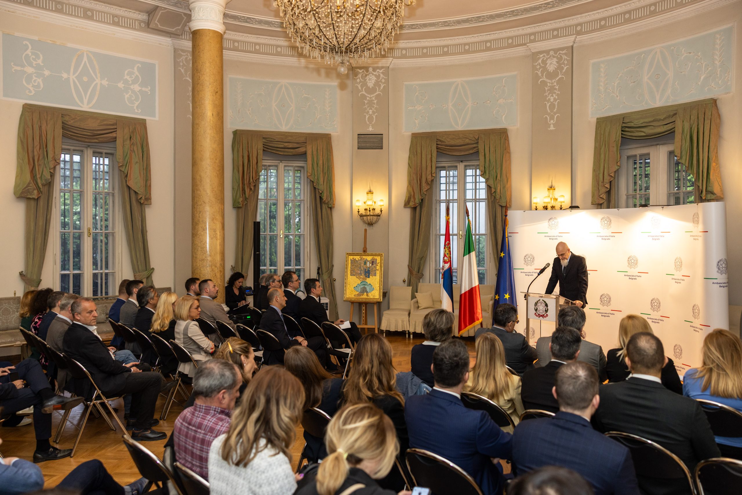 In occasione della Giornata del Made in Italy, l’Ambasciatore d’Italia in Serbia Luca Gori ha ospitato ieri in Residenza un incontro tra gli attori del “Sistema Italia” e gli imprenditori operanti nel Paese. La riunione è stata l’occasione per fare il punto sul quadro politico-economico della Serbia; per valorizzare il Piano d’Azione per l’Export italiano lanciato di recente dal Vice Presidente del Consiglio e Ministro degli Affari Esteri e della Cooperazione Internazionale, On. Tajani; e per aggiornare la comunità imprenditoriale sulla programmazione di attività curate dalle varie articolazioni del Sistema Italia in Serbia.