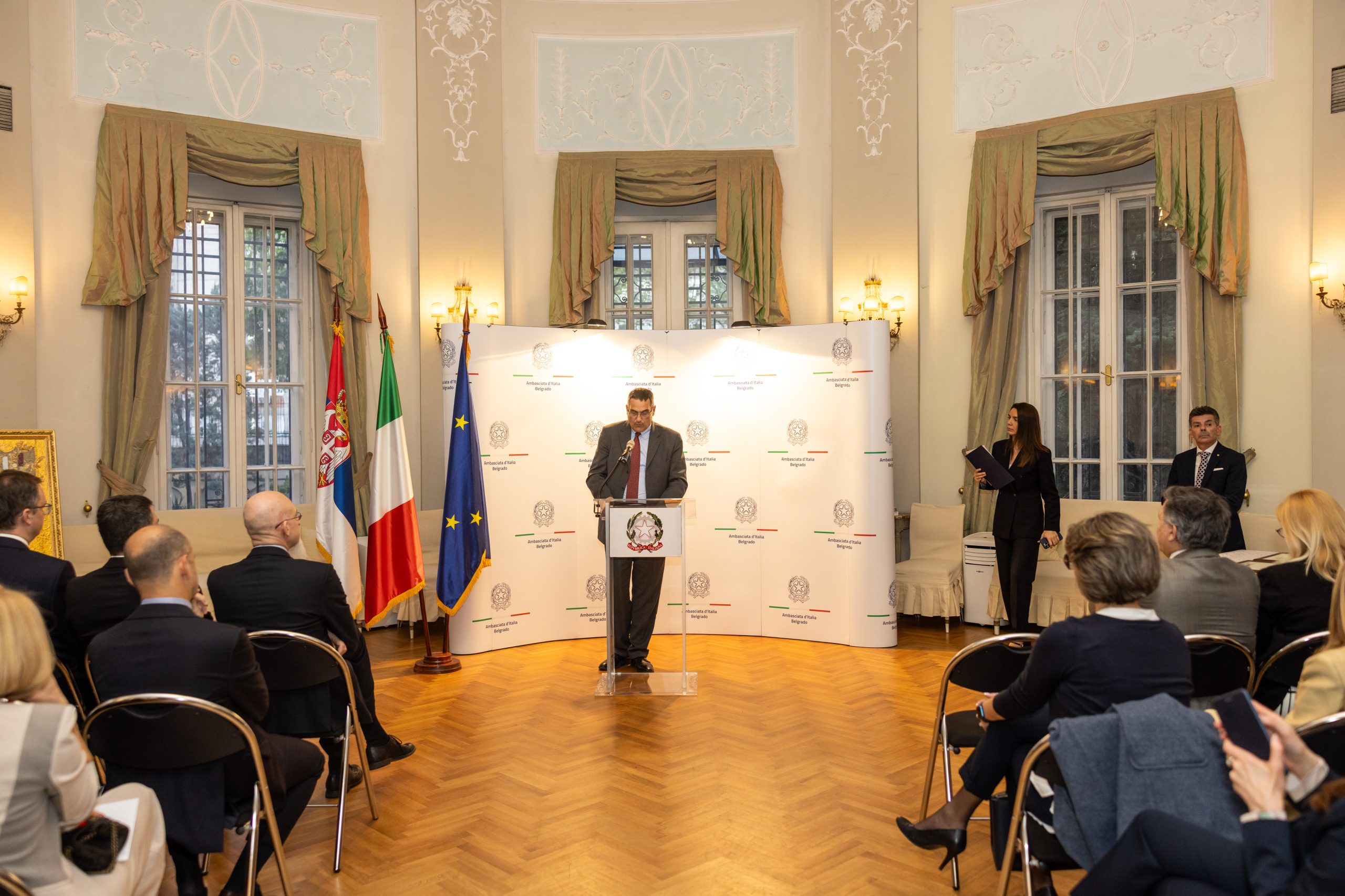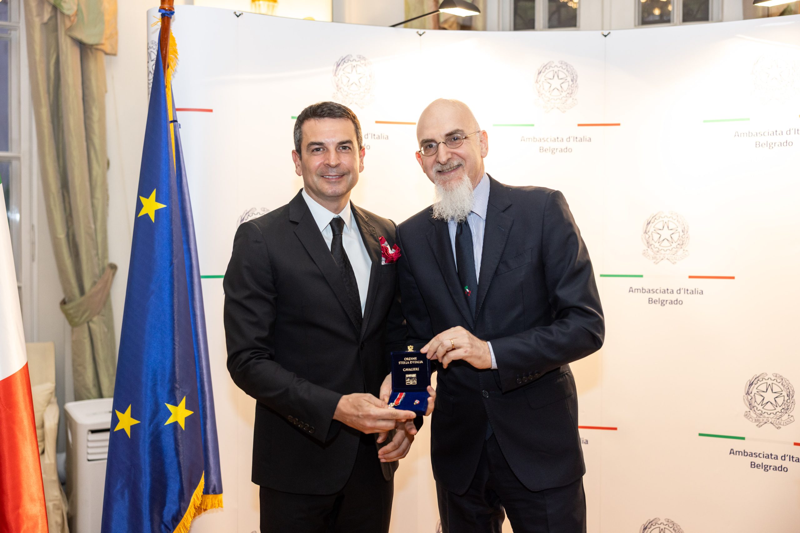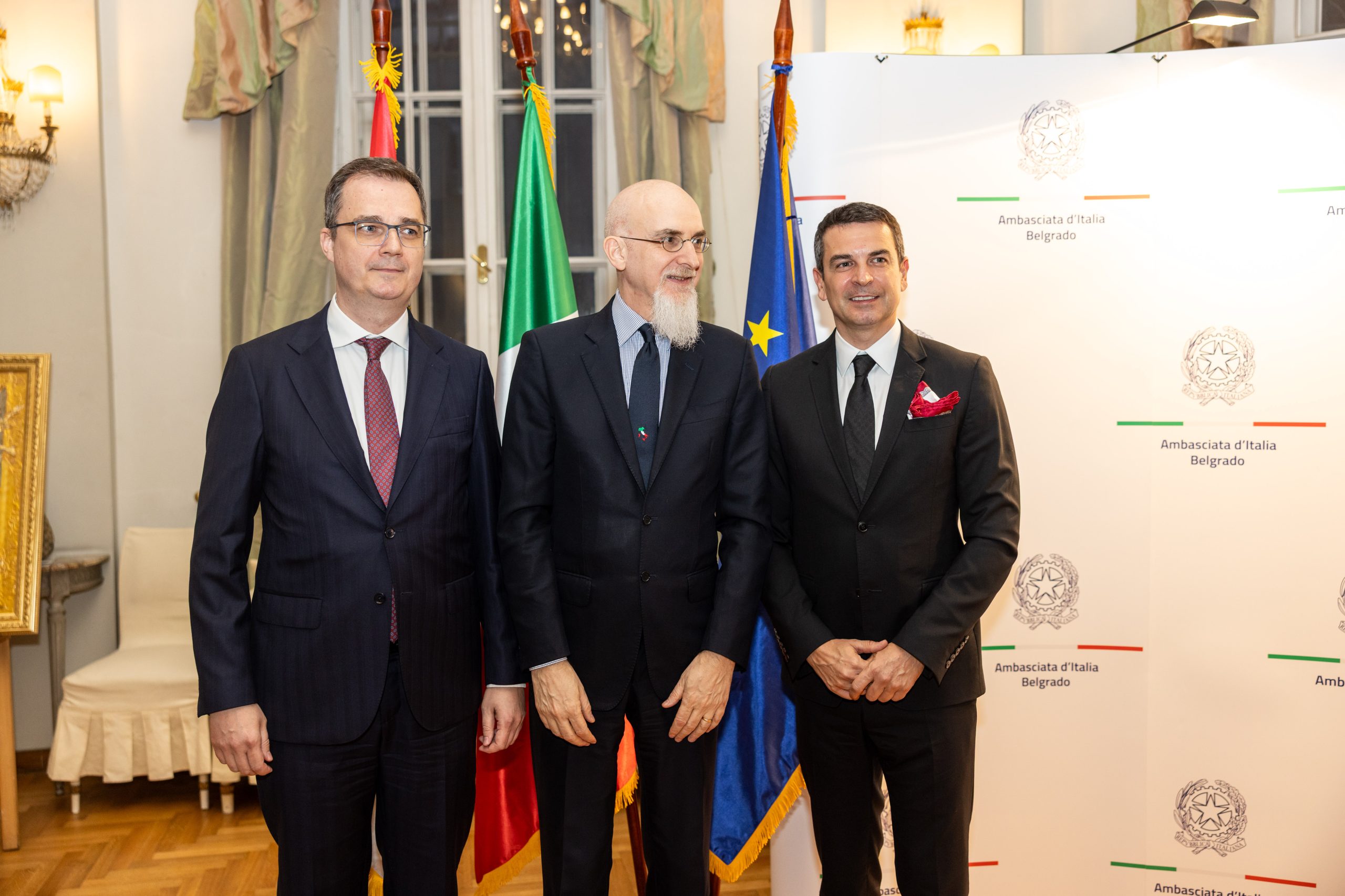 Nel corso dell’evento l’Ambasciatore Gori ha anche consegnato l’onorificenza di Cavaliere dell’Ordine della Stella d’Italia a Darko Popovic, Amministratore Delegato di Banca Intesa Beograd, e a Nikola Vuletic, Amministratore Delegato di Unicredit Bank Serbia, per il loro significativo contributo allo sviluppo delle relazioni tra Italia e Serbia e il generoso sostegno alle attività nel campo economico, culturale e della solidarietà dell’Ambasciata (a partire dall’iniziativa “Bircaninova@100” varata in occasione del centenario della costruzione della Rappresentanza diplomatica).