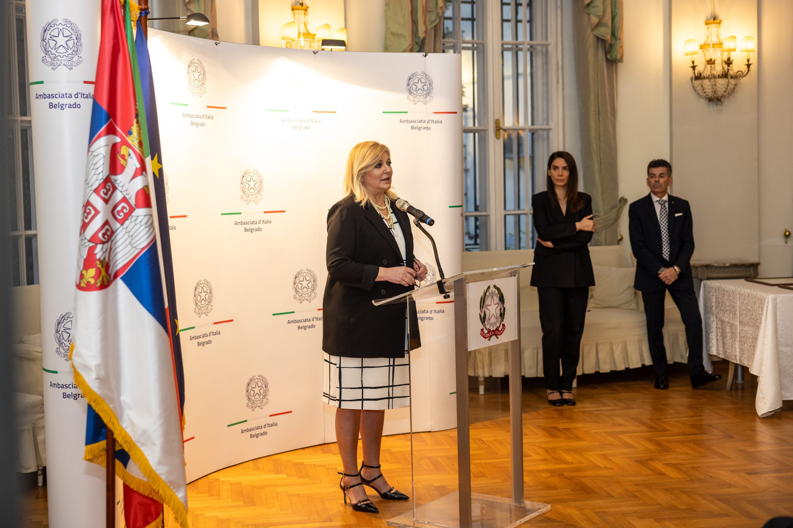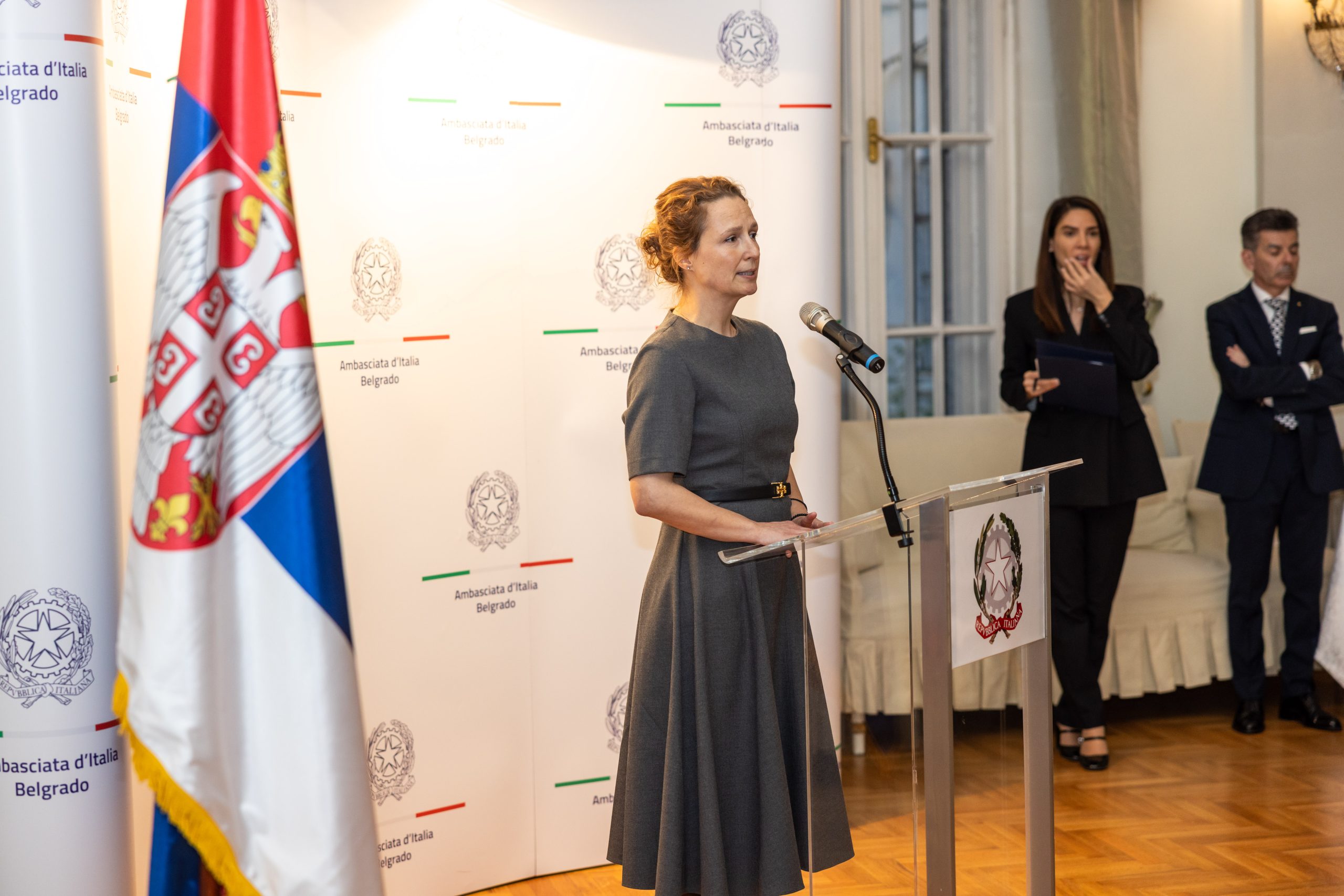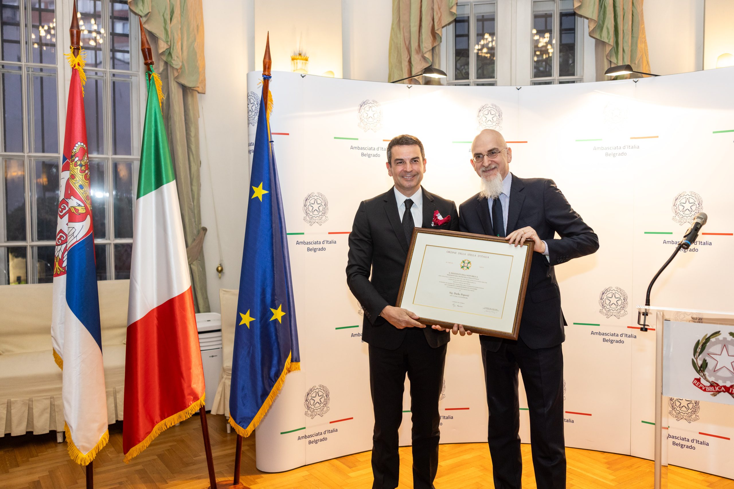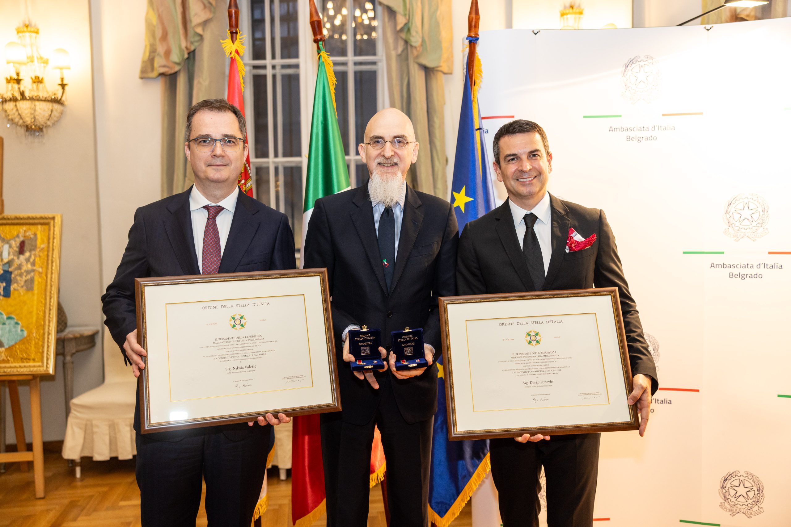 Nel corso dell’evento l’Ambasciatore Gori ha anche consegnato l’onorificenza di Cavaliere dell’Ordine della Stella d’Italia a Darko Popovic, Amministratore Delegato di Banca Intesa Beograd, e a Nikola Vuletic, Amministratore Delegato di Unicredit Bank Serbia, per il loro significativo contributo allo sviluppo delle relazioni tra Italia e Serbia e il generoso sostegno alle attività nel campo economico, culturale e della solidarietà dell’Ambasciata (a partire dall’iniziativa “Bircaninova@100” varata in occasione del centenario della costruzione della Rappresentanza diplomatica).
