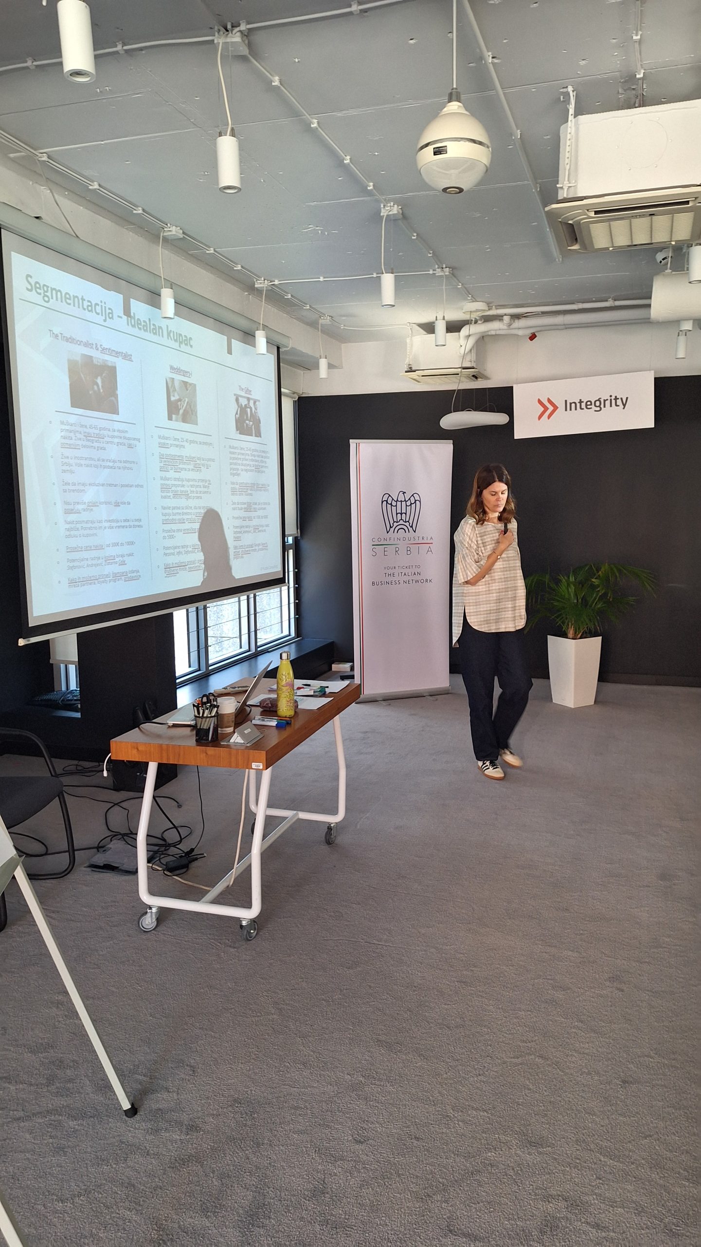 Sotto la guida professionale di Manuela Stamatovic, i partecipanti hanno approfondito i diversi concetti di marketing come la segmentazione del mercato e il targeting, con particolare entusiasmo per l’attività che ha suscitato maggior interesse – la definizione del profilo del cliente ideale. Attraverso gli esempi pratici, abbiamo conosciuto il profilo di “Mile”, un operaio che segue i portali online del settore nonché i tutorial su YouTube, apprezza la puntualità nelle consegne, ama ricevere i sconti, riconosce il rapporto qualità-prezzo dei prodotti e torna volentieri ad acquistare un prodotto specifico se le sue aspettative sono state soddisfatte.