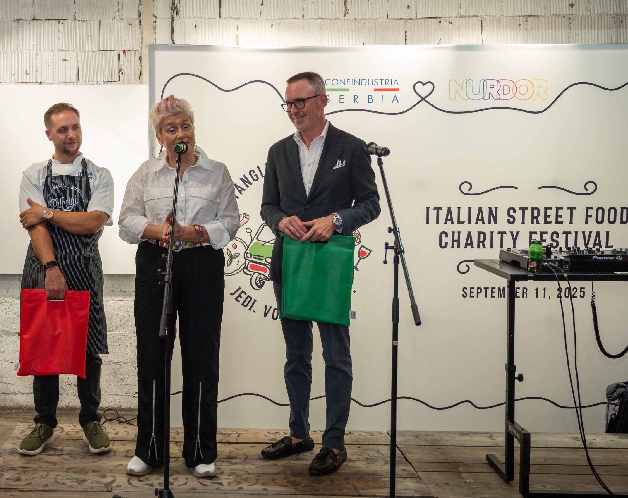 U četvrtak 11.septembra na Dorćol Platz-u održan je Italian Street Food Charity Festival, jedinstveni događaj koji je, pod sloganom „JEDI. VOLI. DONIRAJ“, okupio članove i prijatelje Konfindustrije Srbija, kao i brojne građane koji su uz autentične italijanske specijalitete i dobru atmosferu, dali doprinos humanitarnoj akciji – prikupljanju sredstava za Nacionalno udruženje roditelja dece obolele od raka – NURDOR. Ovo udruženje više od 20 godina pruža podršku deci oboleloj od raka i njihovim porodicama, pružajući praktičnu, emotivnu i materijalnu podršku.
